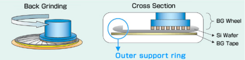 不把晶圓磨薄,而是只磨中間,留下外圈支撐。